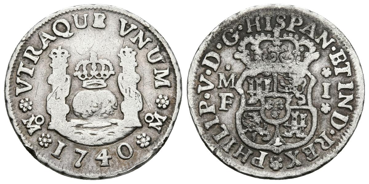 FELIPE V. 1 Real. 1740. México MF. Cal-1602. Ar. 3,16g. Soldaduras en el canto. MBC-.
