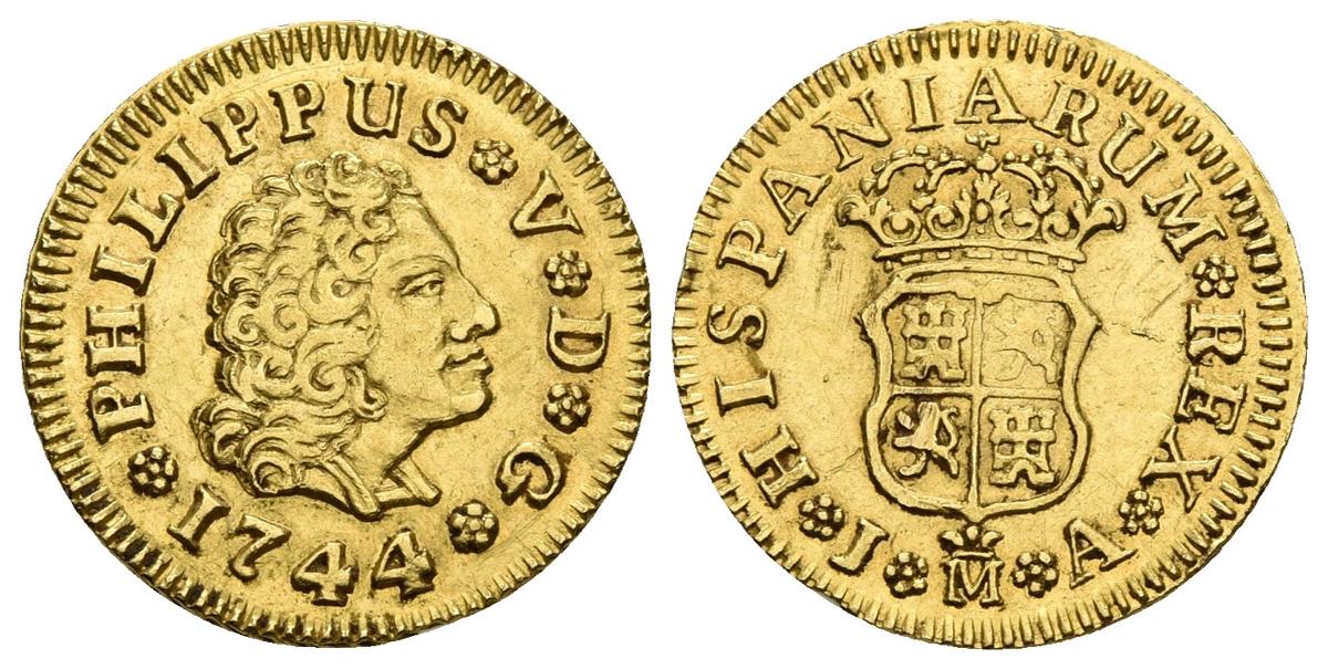 FELIPE V. 1/2 Escudo. 1744. Madrid JA. Cal-574. Au. 1,77g. EBC-/MBC+.