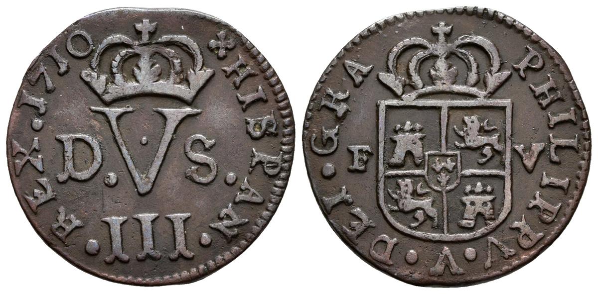 FELIPE V. Treseta. 1710. Valencia. Letra N en posición normal. Cal-2012. Ae. 3,00g. MBC.