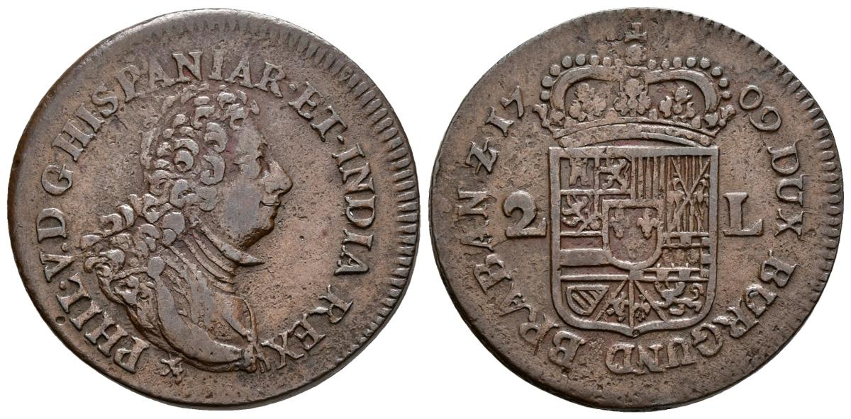 FELIPE V. 2 Liards. 1709. Namur. Km#5. Ae. 6,94g. MBC.