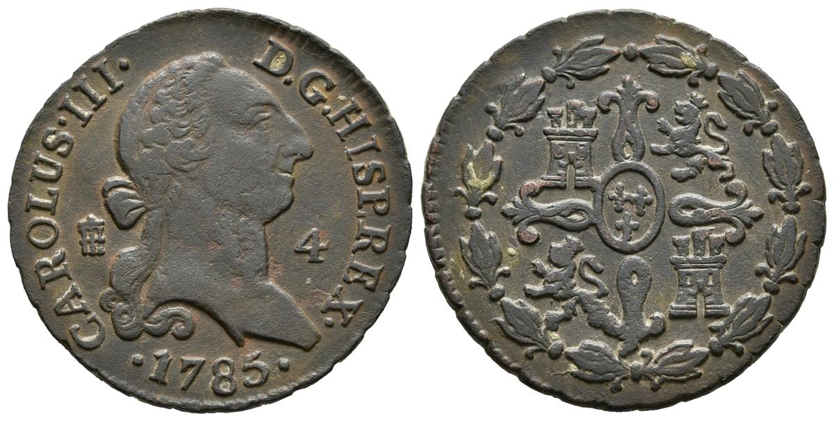 CARLOS III. 4 Maravedís. 1785. Segovia. Cal-1894. Ae. 4,94g. MBC/MBC+.
