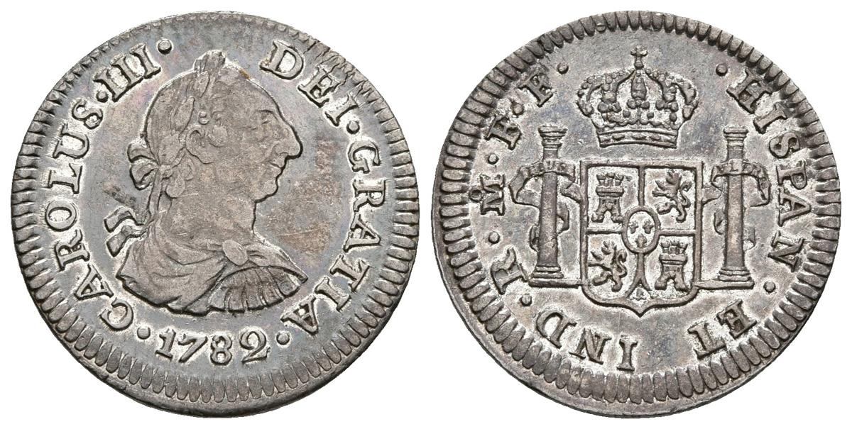 CARLOS III. 1/2 Real. 1782. México FF. Cal-1774. Ar. 1,61g. Conserva parte del brillo original. Suave tono. MBC+/EBC-.