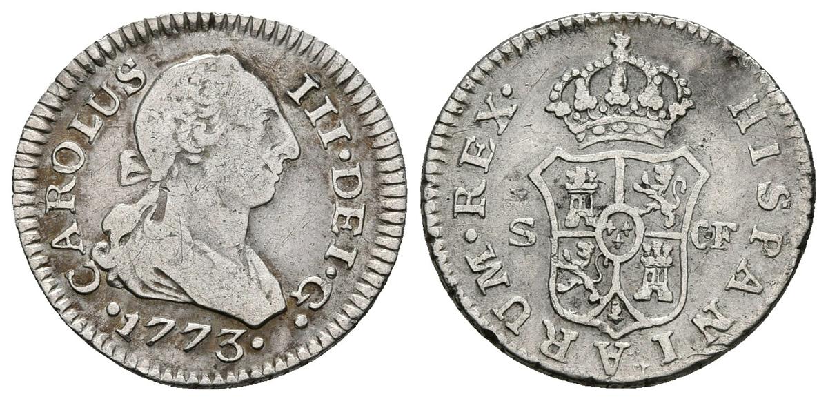 CARLOS III. 1/2 Real. 1773. Sevilla CF. Cal-1854. Ar. 1,32g. Golpecito en el canto. MBC.