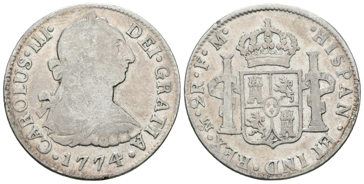 CARLOS III. 2 Reales. 1774. México FM. Cal-1341. Ar. 6,58g. BC/BC+.