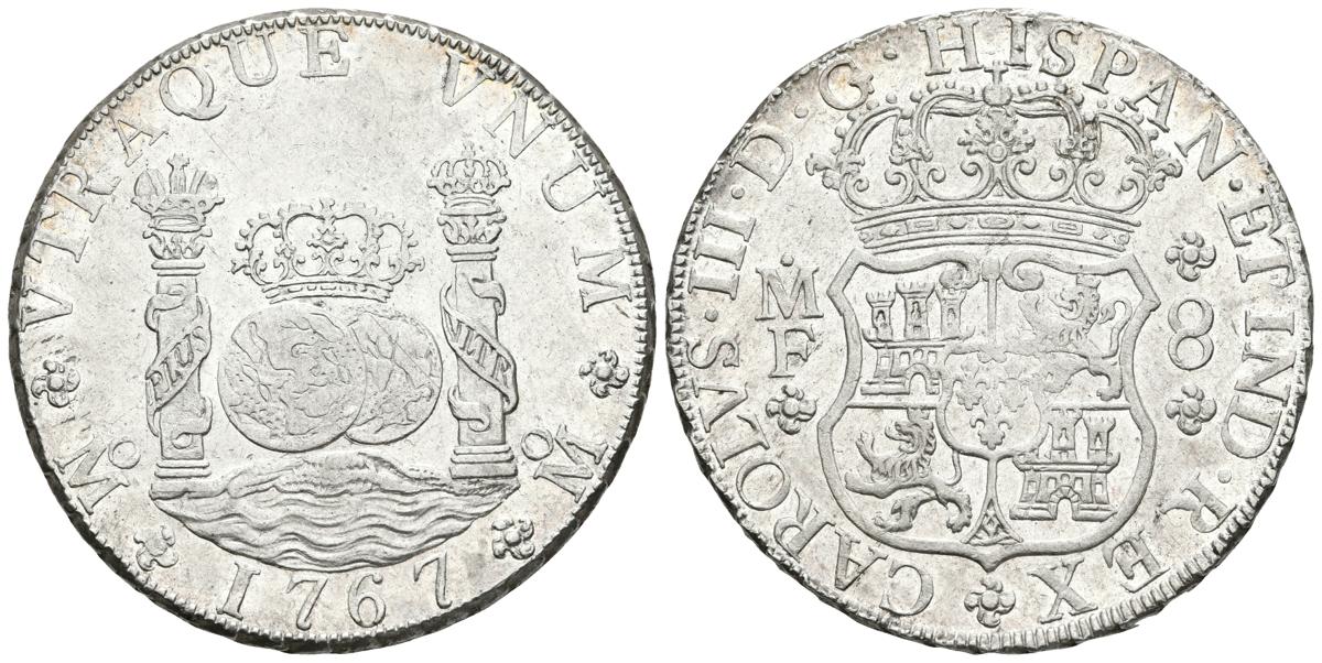CARLOS III. 8 Reales. 1767. México MF. Columnario. Cal-906. Ar. 26,97g. Bella. MBC+.