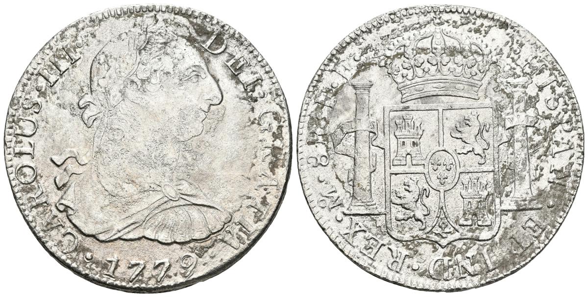 CARLOS III. 8 Reales. 1779. México FF. Cal-929. Ar. 25,35g. Oxidaciones marinas. BC+/MBC-.