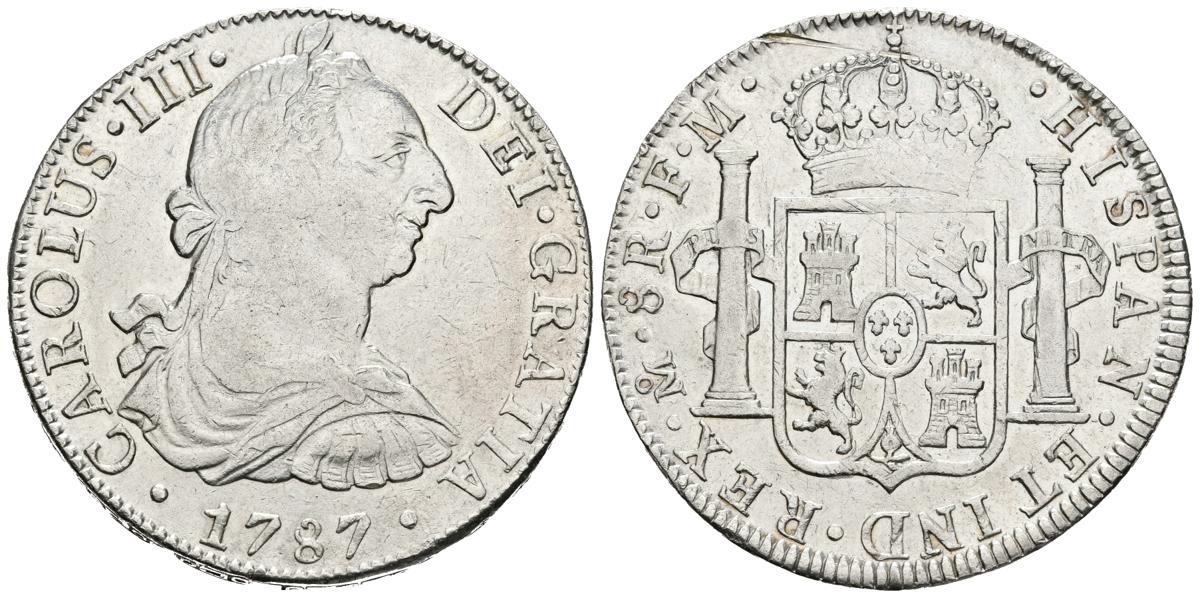 CARLOS III. 8 Reales. 1787. México FM. Cal-941. Ar. 26,83g. Raya en reverso. MBC.