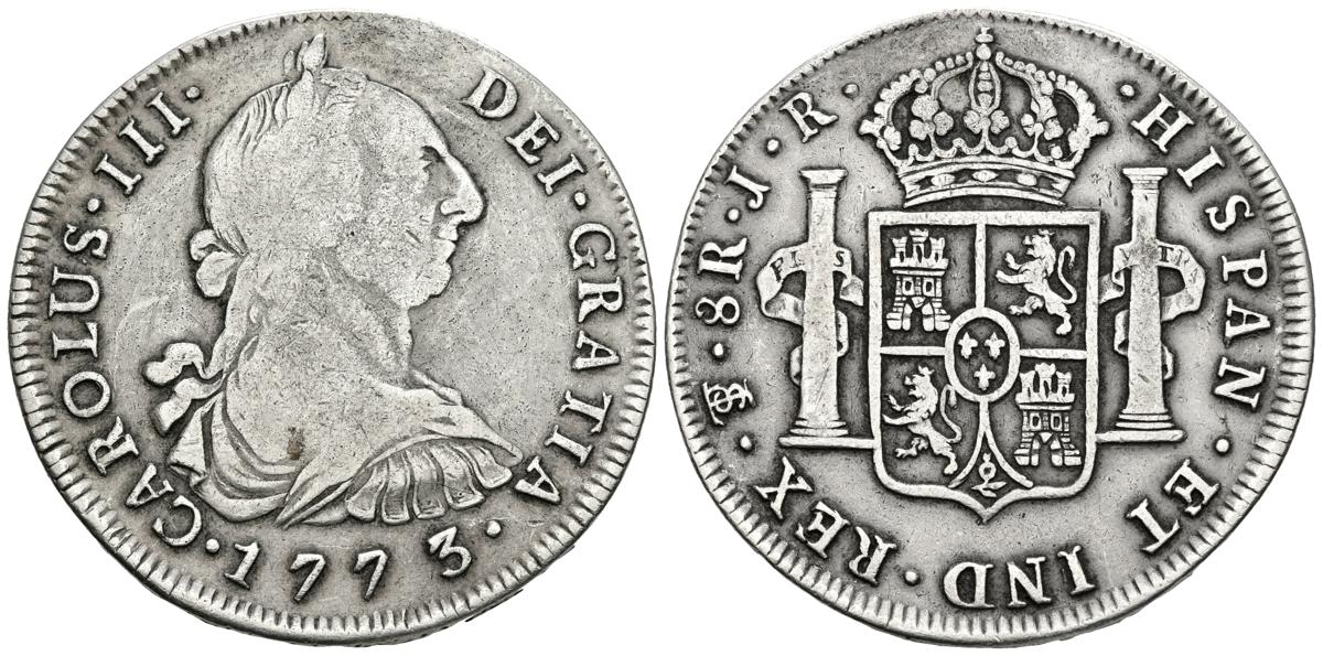 CARLOS III. 8 Reales. 1773. Potosí JR. Cal-973. Ar. 26,70g. MBC-/MBC.