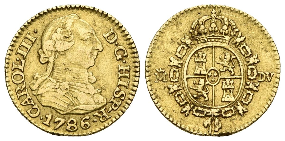 CARLOS III. 1/2 Escudo. 1786. Madrid DV. Cal-778. Au. 1,75g. Golpecito en el canto. MBC+.
