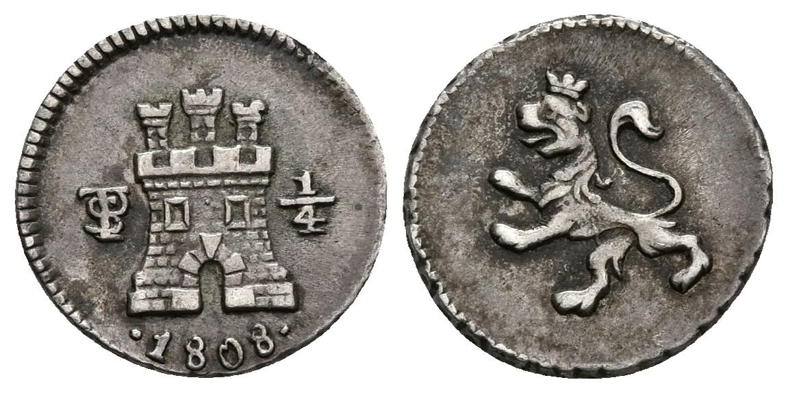 CARLOS IV. 1/4 de Real. 1808. Potosí. Cal-1425. Ar. 0,86g. Pátina. EBC-.