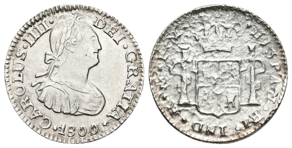 CARLOS IV. 1/2 Real. 1800. México FM. Cal-1294. Ar. 1,14g. Oxidaciones limpiadas en reverso. EBC+/MC.
