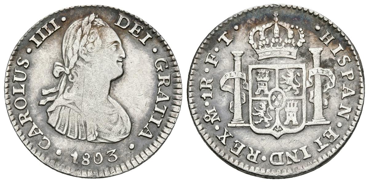 CARLOS IV. 1 Real. 1803. México FT. Cal-1151. Ar. 3,33g. MBC-/MBC.
