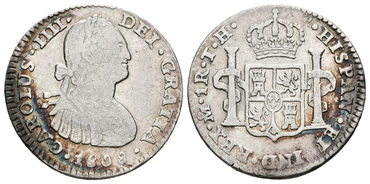 CARLOS IV. 1 Real. 1808. México TH. Cal-1303. Ar. 3,33g. BC+/MBC-.
