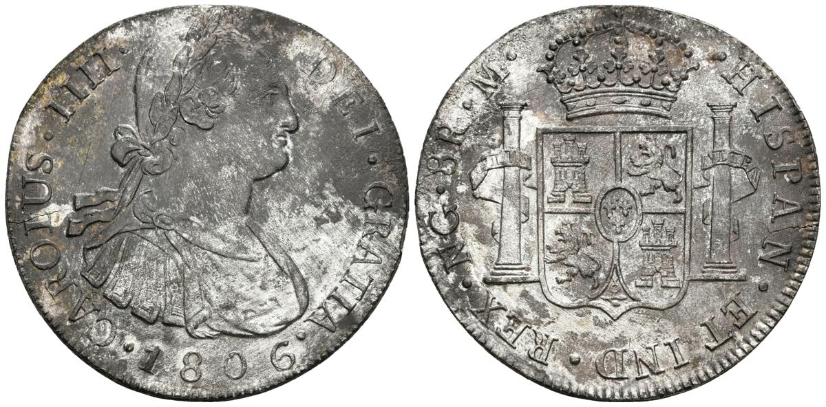 CARLOS IV. 8 Reales. 1806. Guatemala M. Cal-639. Ar. 26,37g. Oxidaciones marinas. MBC. Escasa.