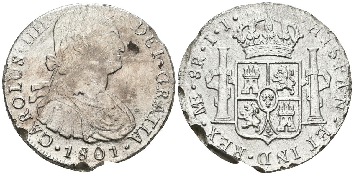 CARLOS IV. 8 Reales. 1801. Lima IJ. Cal-656. Ar. 23,60g. Oxidaciones marinas. MBC-.