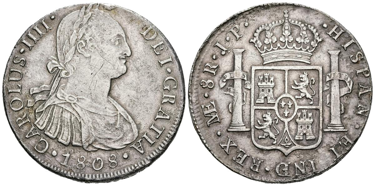 CARLOS IV. 8 Reales. 1808. Lima JP. Cal-662. Ar. 25,72g. Leves restos de soldadura en el canto. MBC/MBC+.