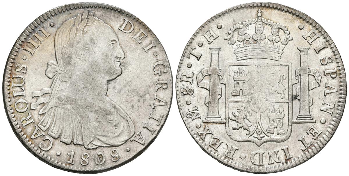 CARLOS IV. 8 Reales. 1808. México TH. Cal-709. Ar. 26,50g. Conserva parte del brillo original. EBC-/MBC+