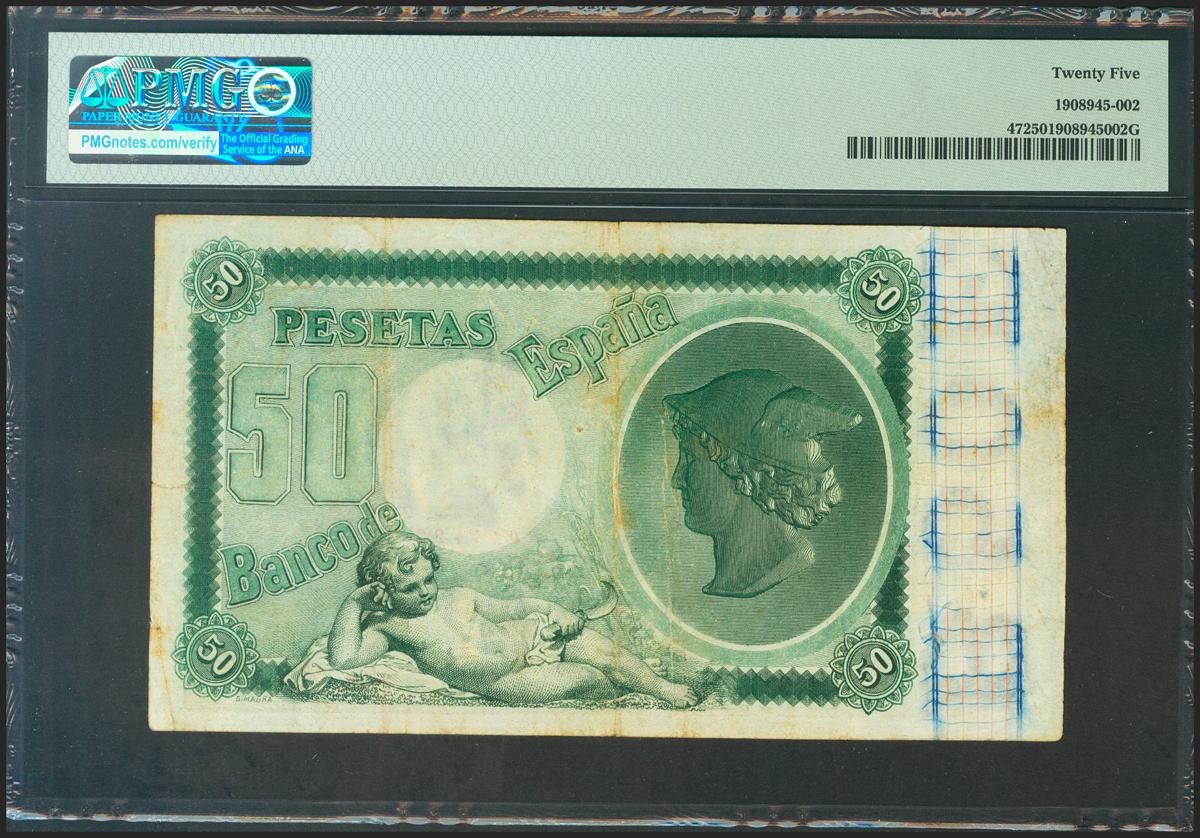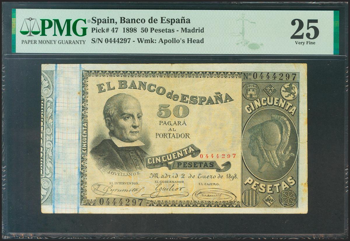 50 Pesetas. 2 de Enero de 1898. Sin serie. (Edifil 2021: 304, Pick: 47). Raro. MBC+. Encapsulado PMG25.