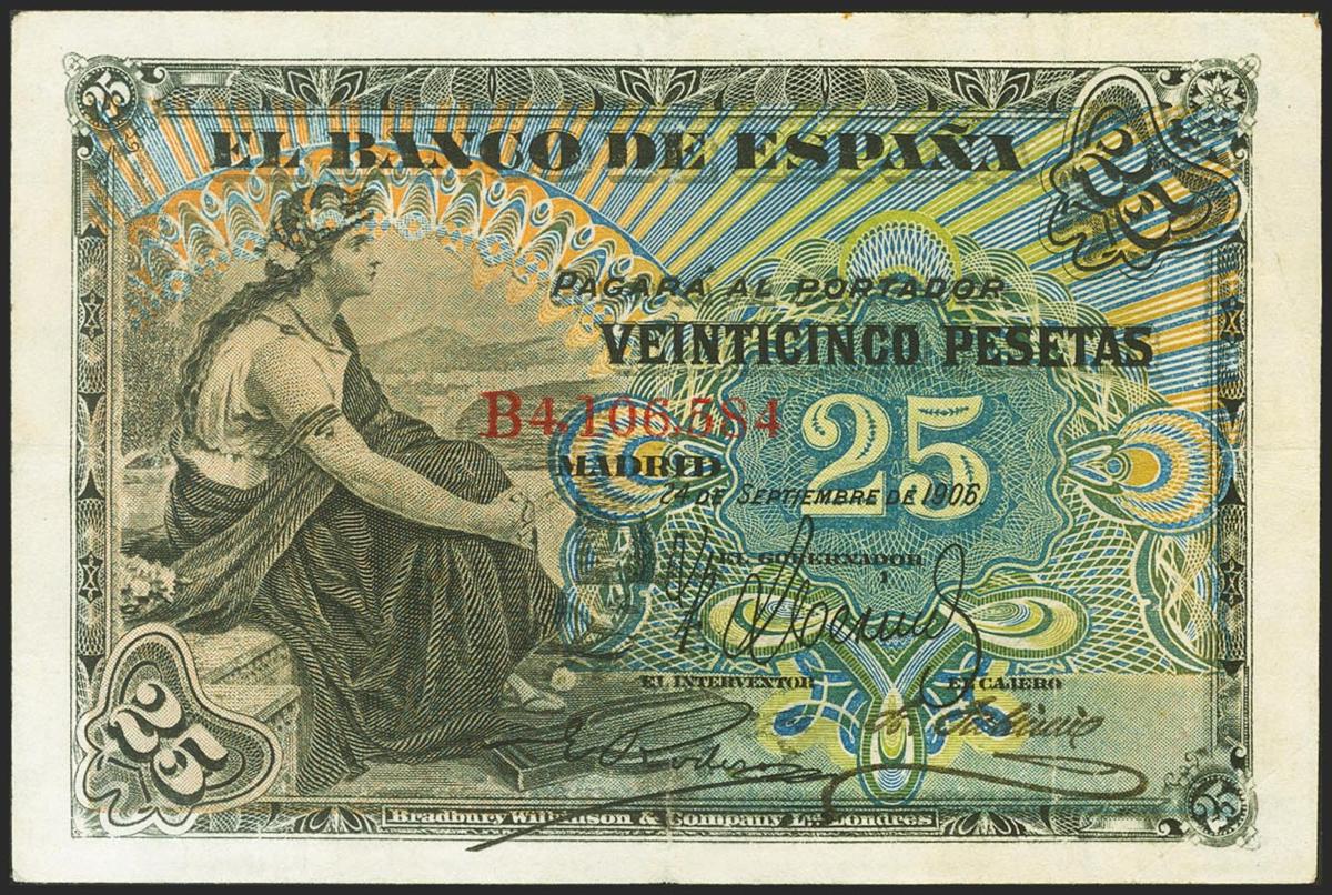 25 Pesetas. 24 de Septiembre de 1906. Serie B. (Edifil 2021: 314a). MBC+.