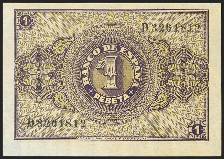 1 Peseta. 30 de Abril de 1938. Serie D. (Edifil 2021: 428a). Conserva todo su apresto original. SC.