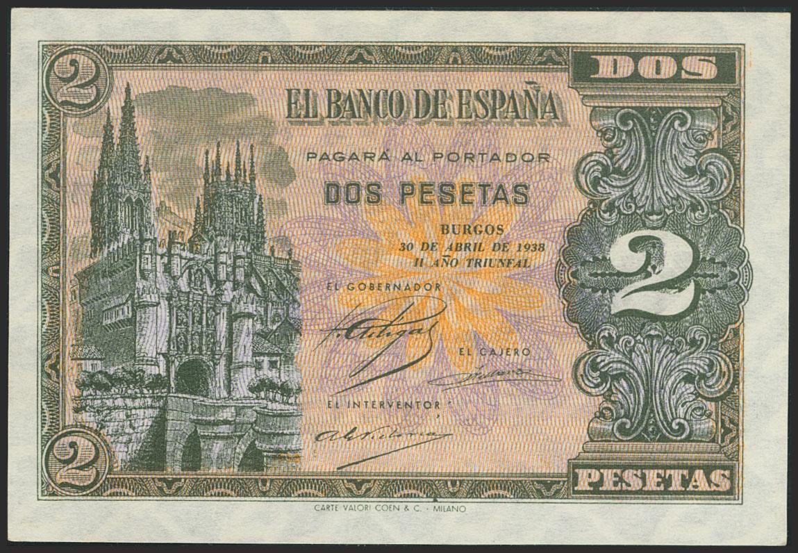 2 Pesetas. 30 de Abril de 1938. Serie E. (Edifil 2017: 429a). Apresto original. SC.