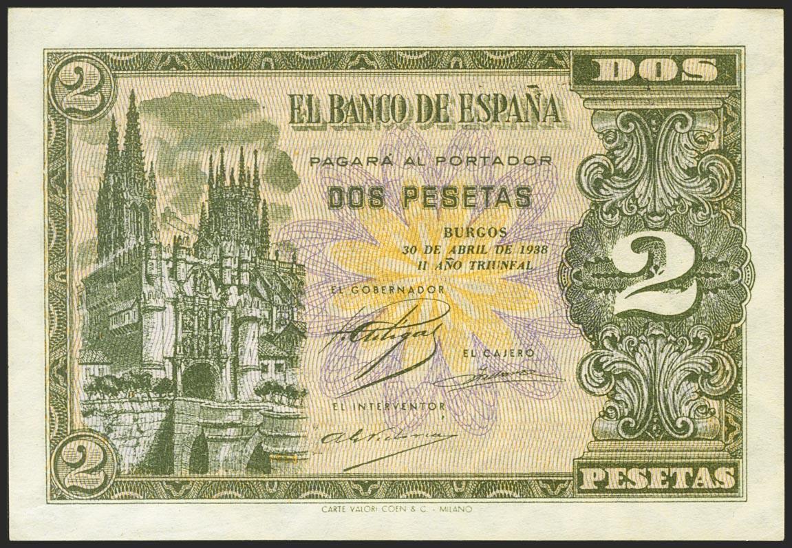 2 Pesetas. 30 de Abril de 1938. Serie H. (Edifil 2021: 429a). Apresto original. SC-.