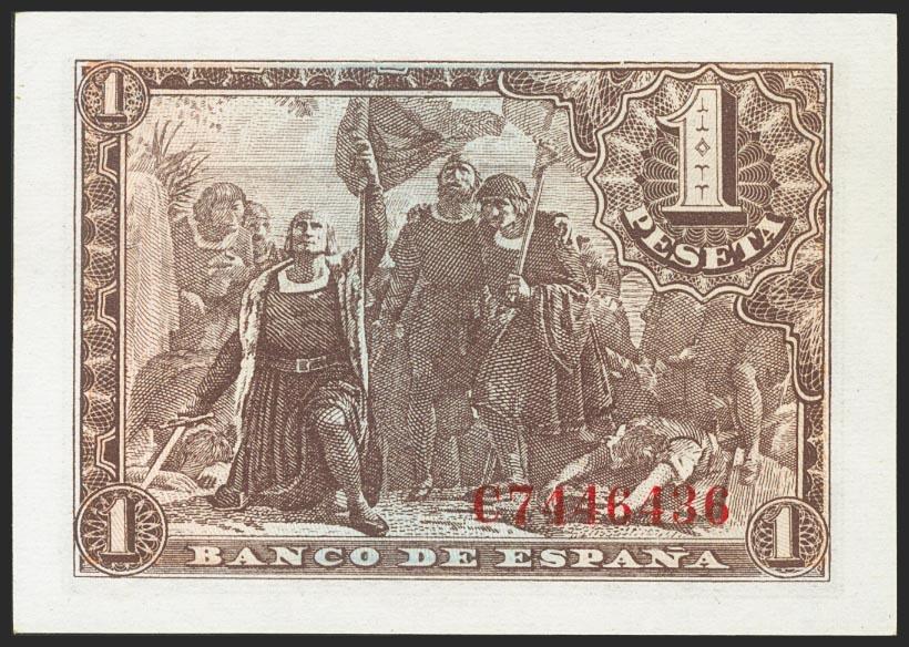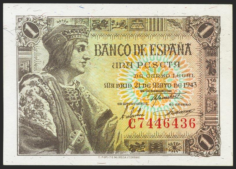 1 Peseta. 21 de Mayo de 1943. Serie C. (Edifil 2021: 447a). Conserva gran parte del apresto original. SC.