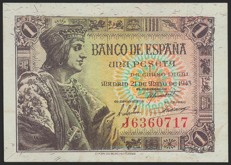 1 Peseta. 21 de Mayo de 1943. Serie J. (Edifil 2021: 447a). Apresto original. SC.