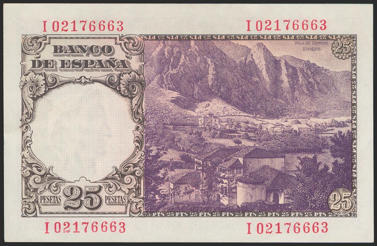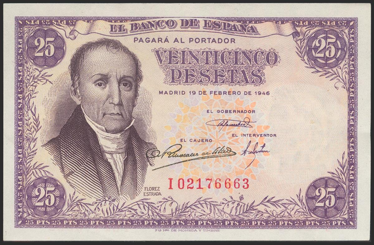 25 Pesetas. 19 de Febrero de 1946. Serie I. (Edifil 2021: 450a). Conserva gran parte del apresto original. EBC+.