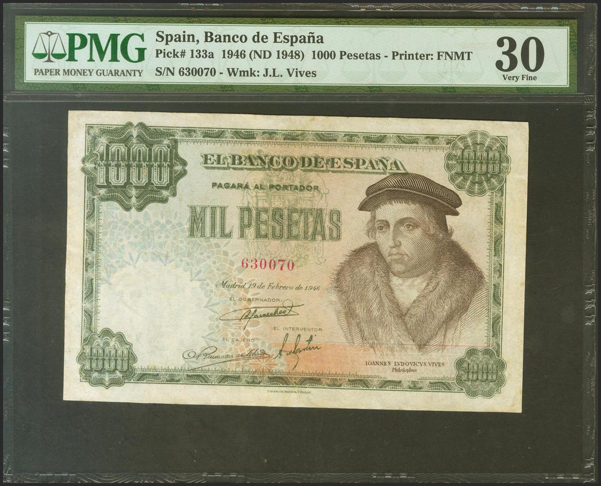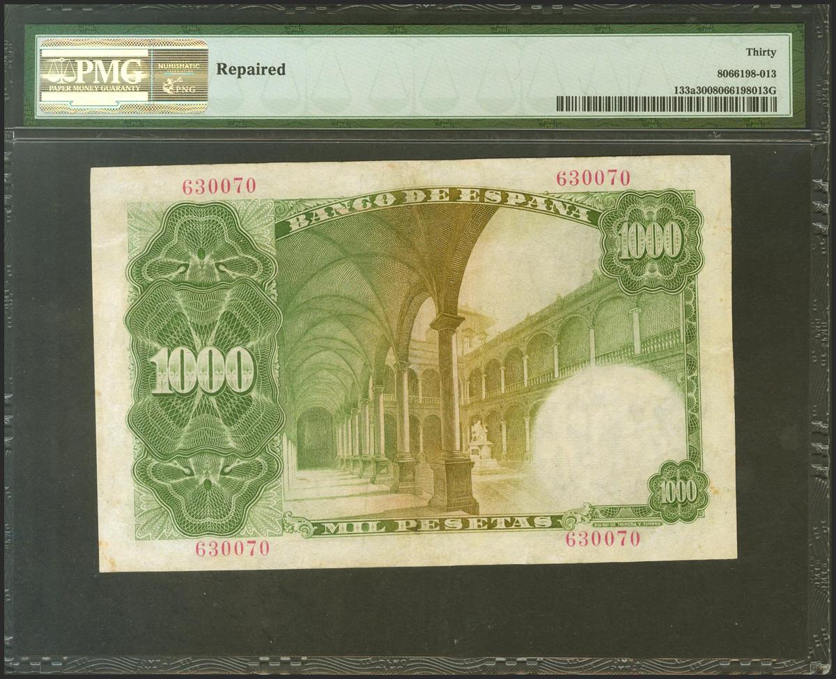 1000 Pesetas. 19 de Febrero de 1946. Sin serie. (Edifil 2021: 453). Reparado. MBC. Encapsulado PMG30.