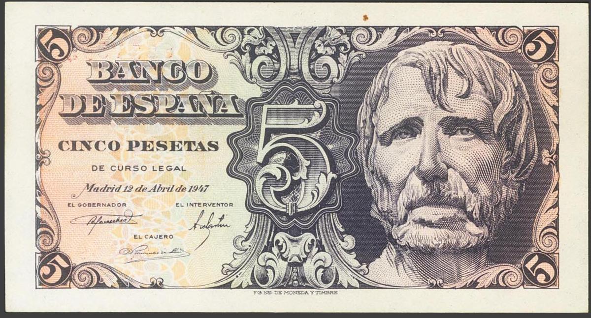 5 Pesetas. 12 de Abril de 1947. Sin serie. (Edifil 2021: 454). Apresto original. SC-.