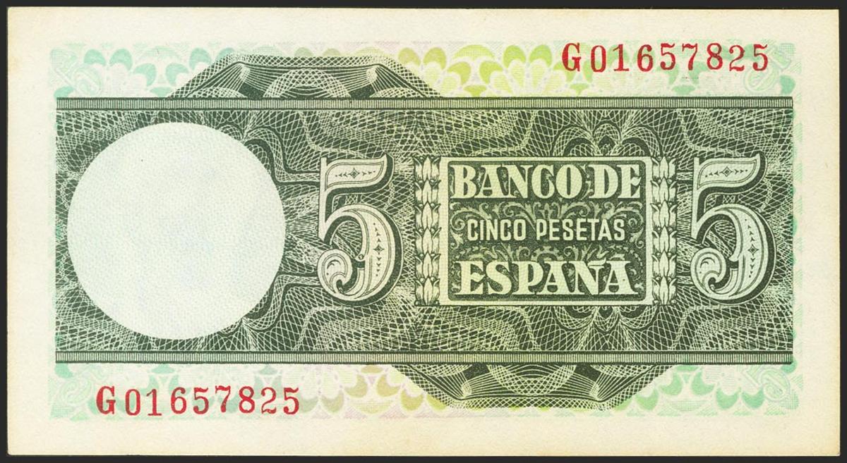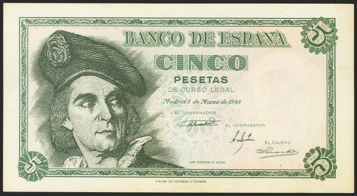 5 Pesetas. 5 de Marzo de 1948. Serie G. (Edifil 2021: 455a). Apresto original. SC.