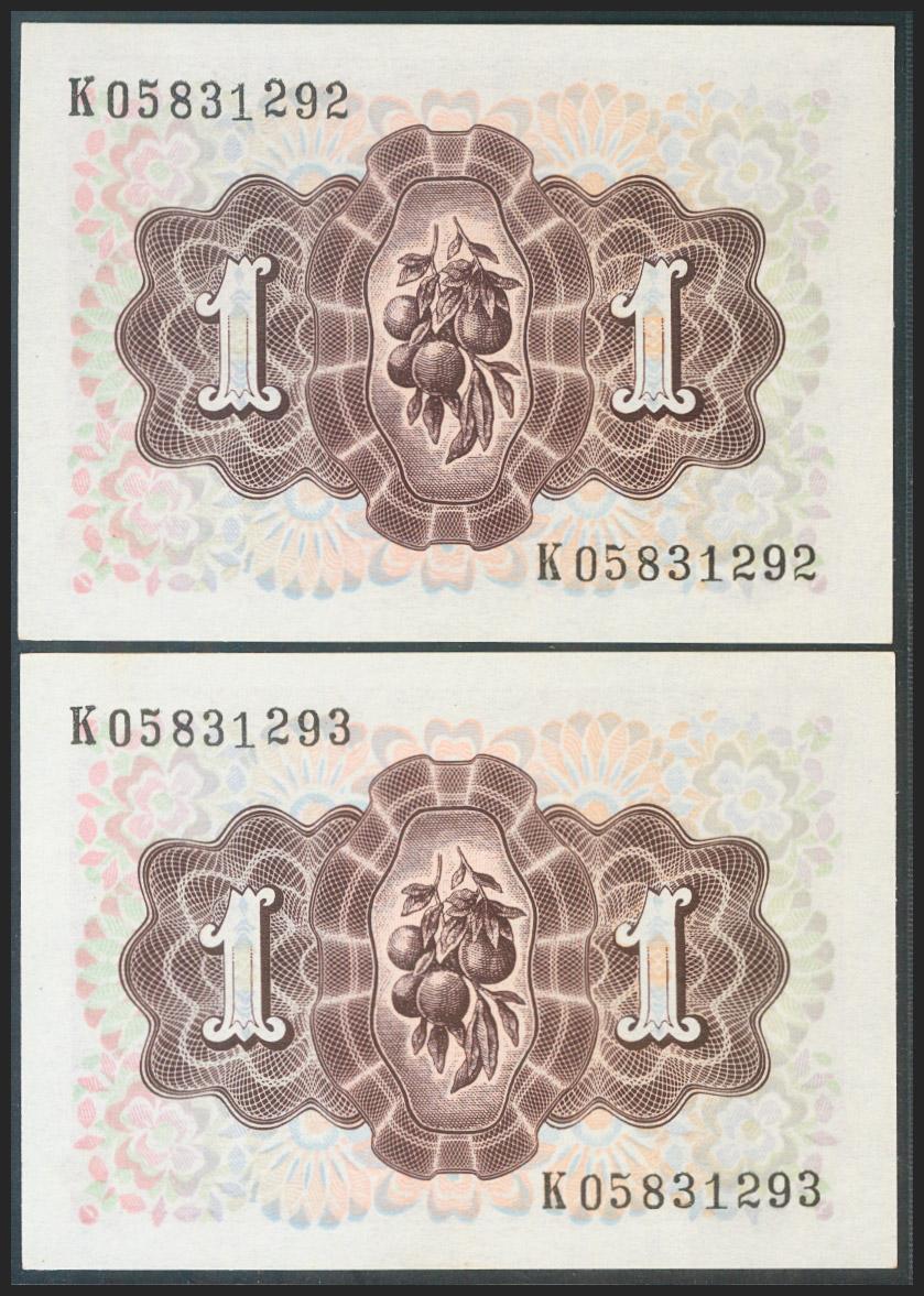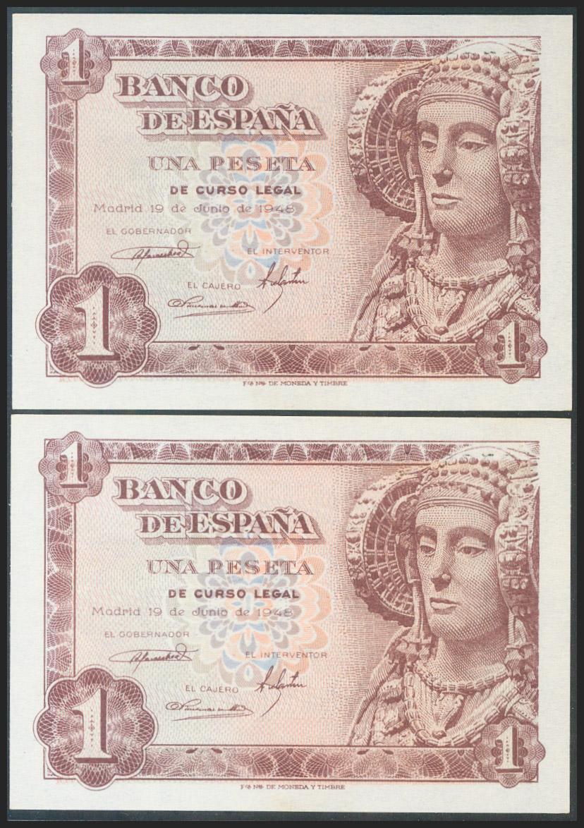 1 Peseta. 19 de Junio de 1948. Pareja correlativa. Serie K. (Edifil 2021: 457a). Apresto original. SC.
