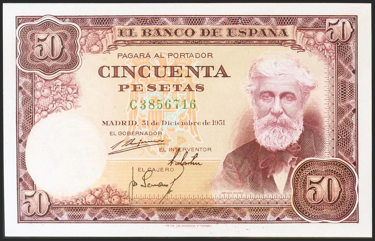 50 Pesetas. 31 de Diciembre de 1951. Serie C. (Edifil 2021: 462a). Presenta gran parte del apresto original. EBC++.