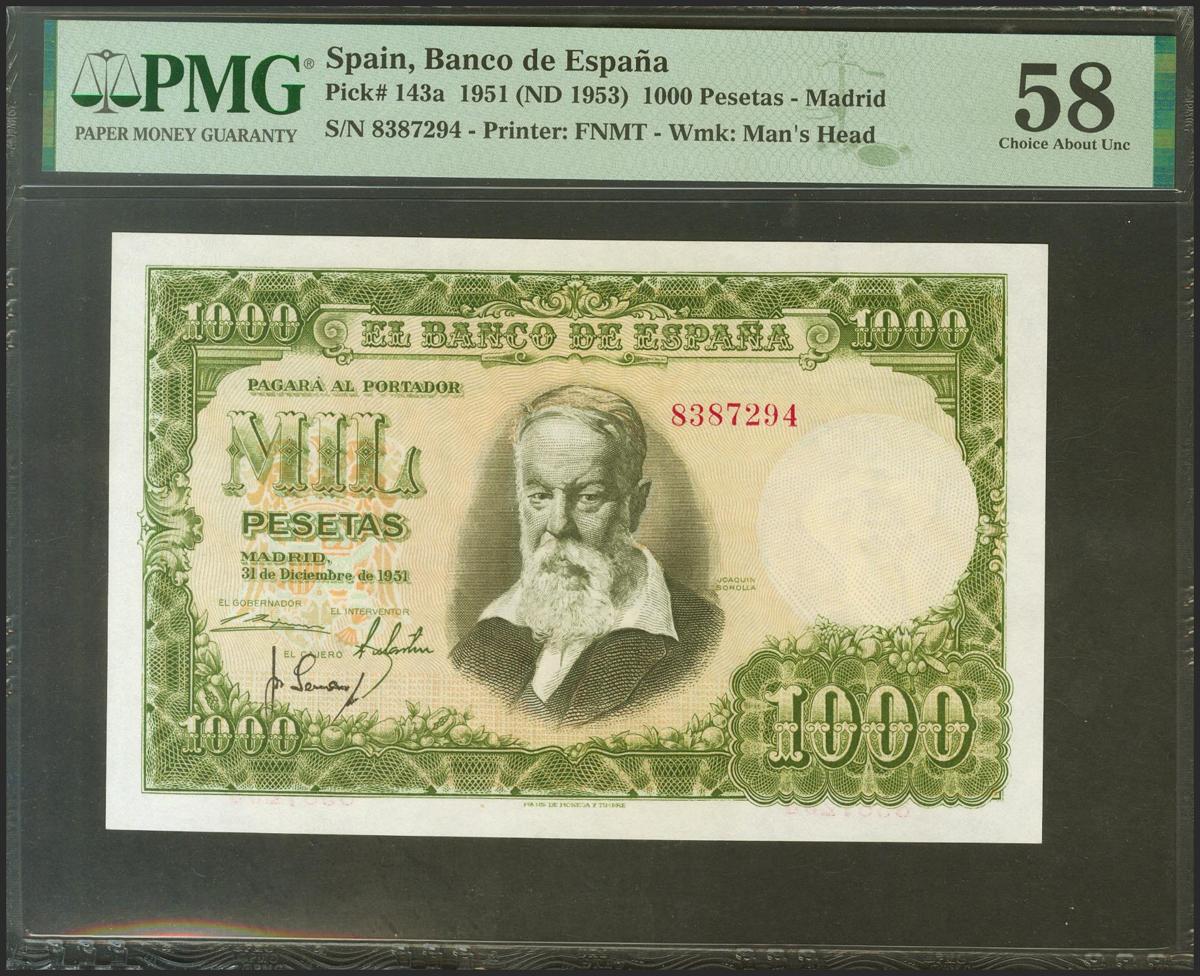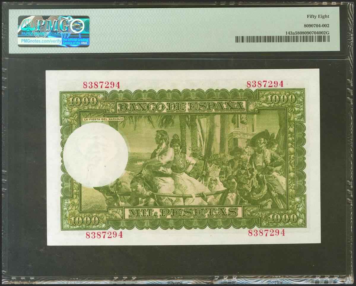1000 Pesetas. 31 de Diciembre de 1951. Sin serie. (Edifil 2021: 463, Pick: 143a). EBC++. Encapsulado PMG58.