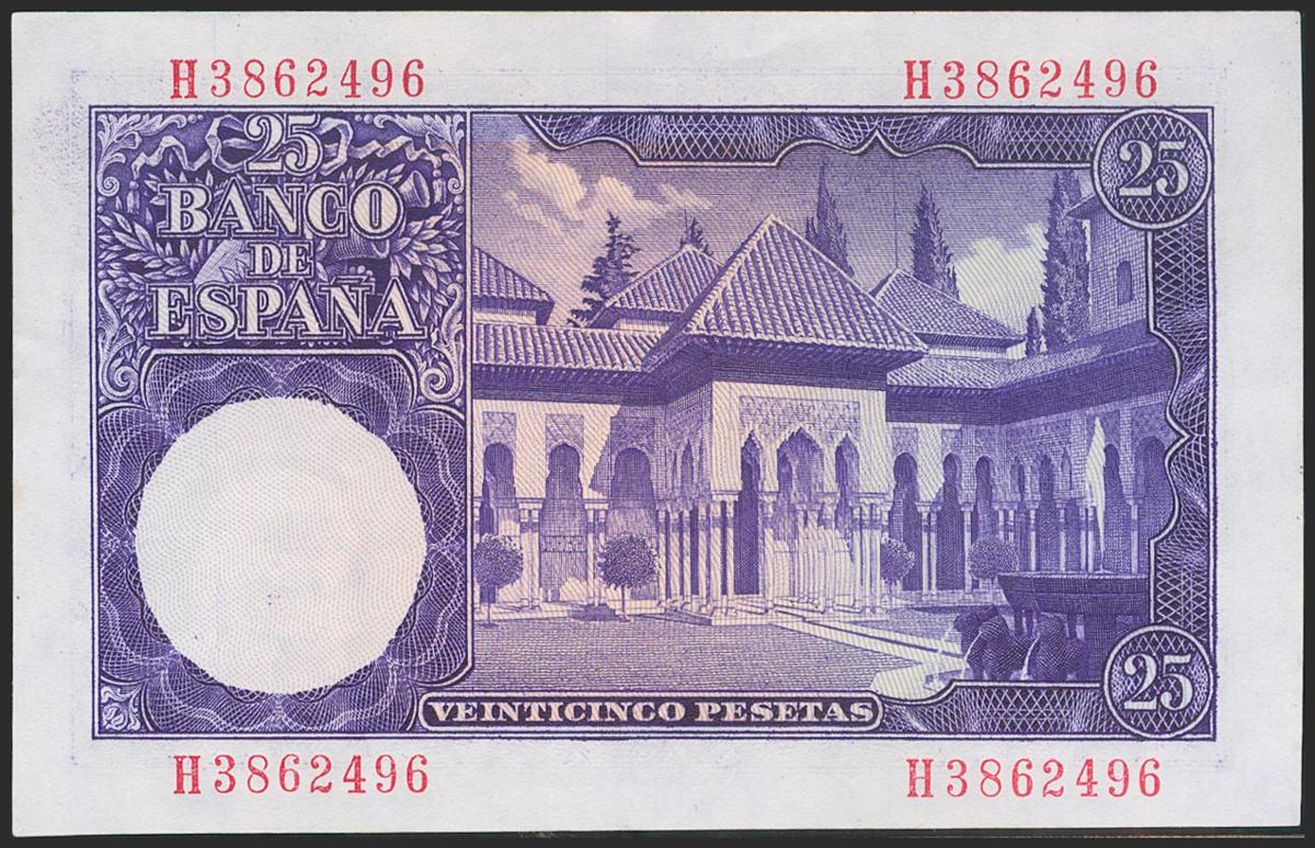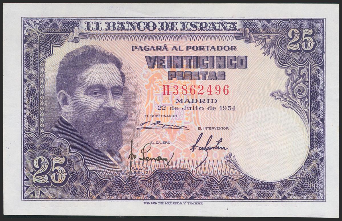 25 Pesetas. 22 de Julio de 1954. Serie H. (Edifil 2021: 467a). Apresto original. SC-.