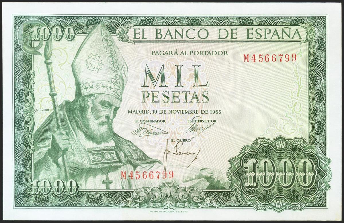 1000 Pesetas. 19 de Noviembre de 1965. Serie M. (Edifil 2021: 471b). Apresto original. SC.