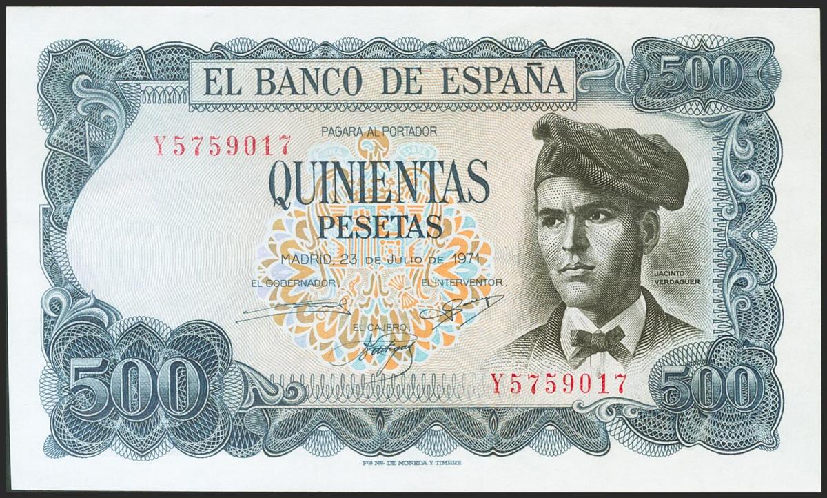 500 Pesetas. 23 de Julio de 1971. Serie Y. (Edifil 2021: 473a). Apresto original. SC-.