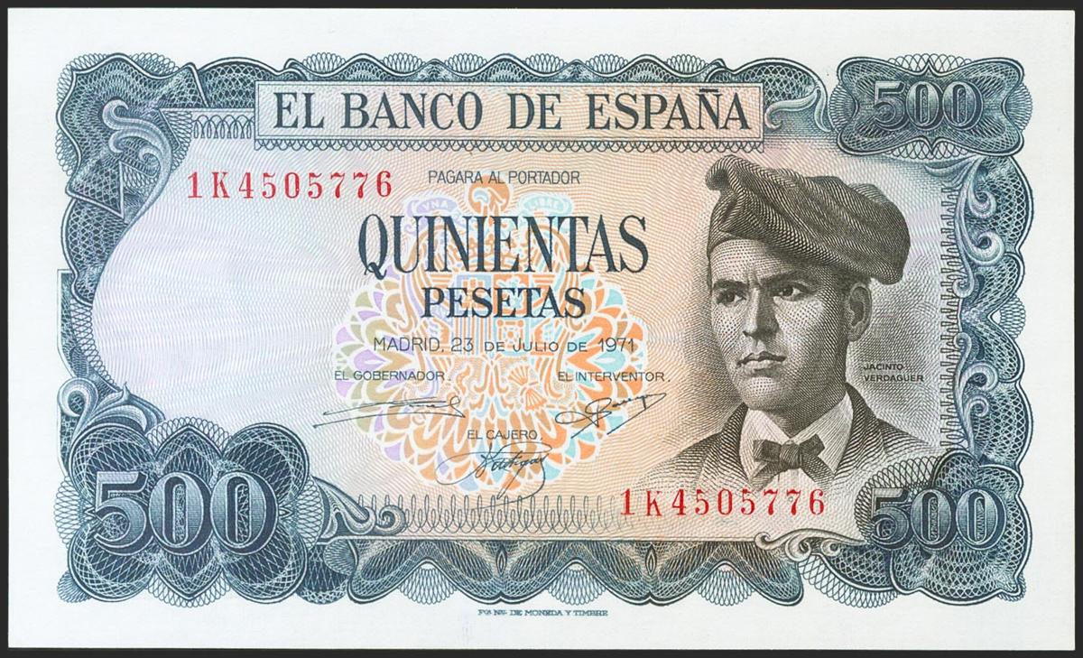 500 Pesetas. 23 de Julio de 1971. Serie 1K. (Edifil 2021: 473a). Apresto original. SC.