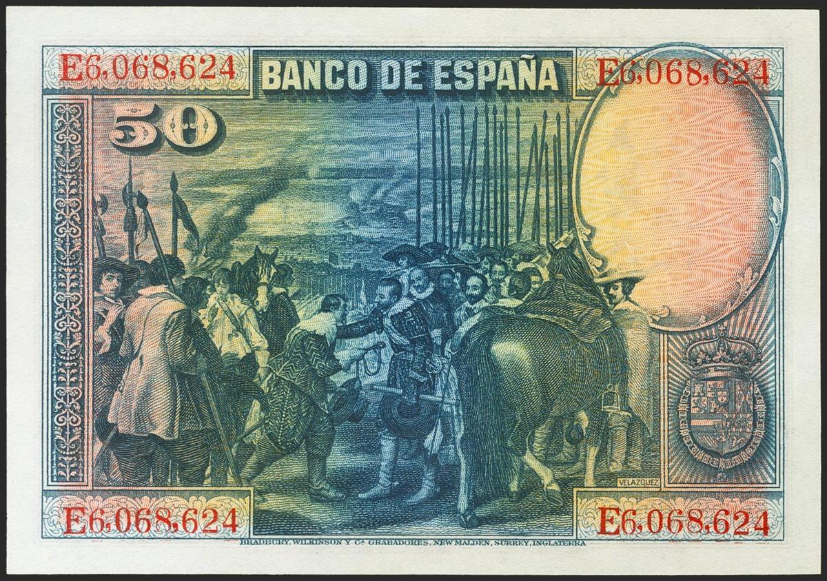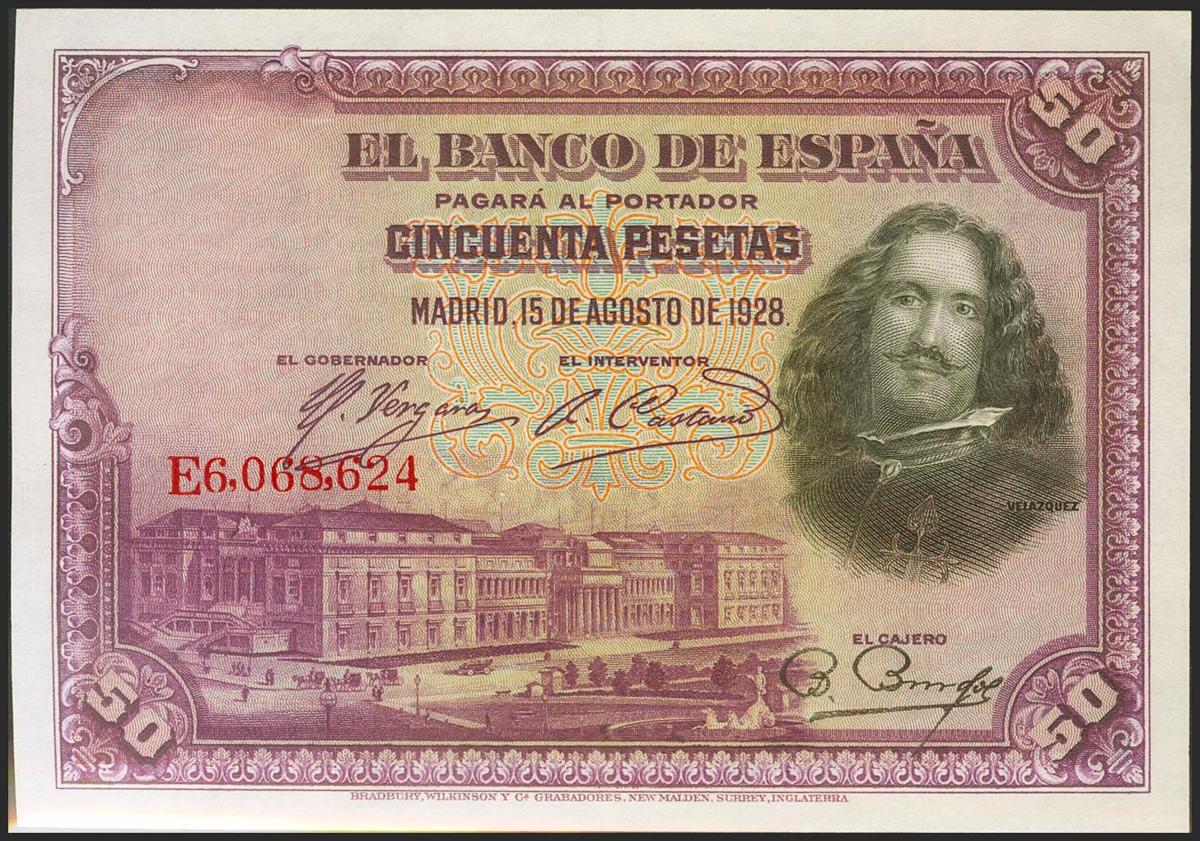 50 Pesetas. 15 de Agosto de 1928. Serie E. (Edifil 2021: 354). Conserva todo su apresto original. SC.