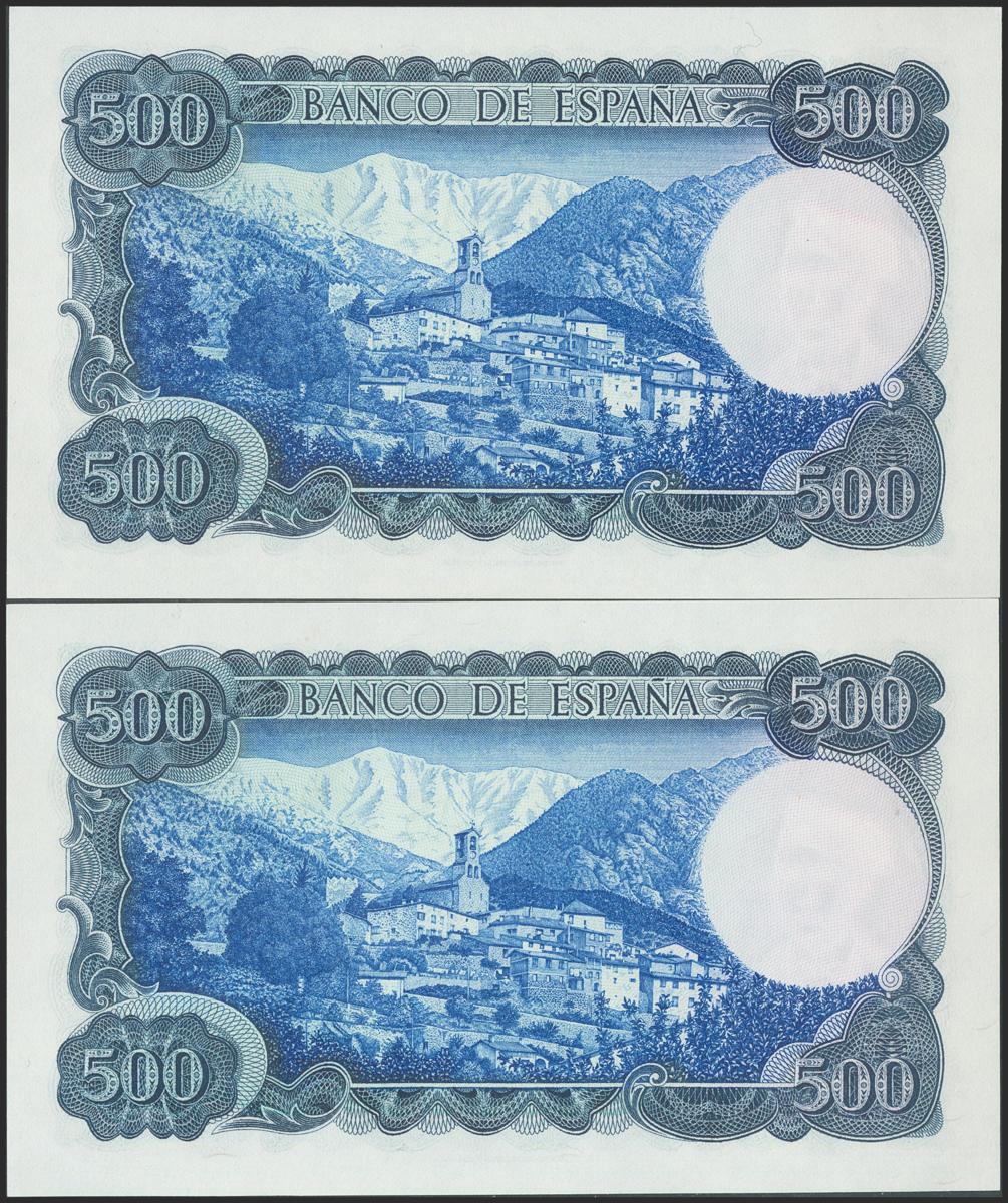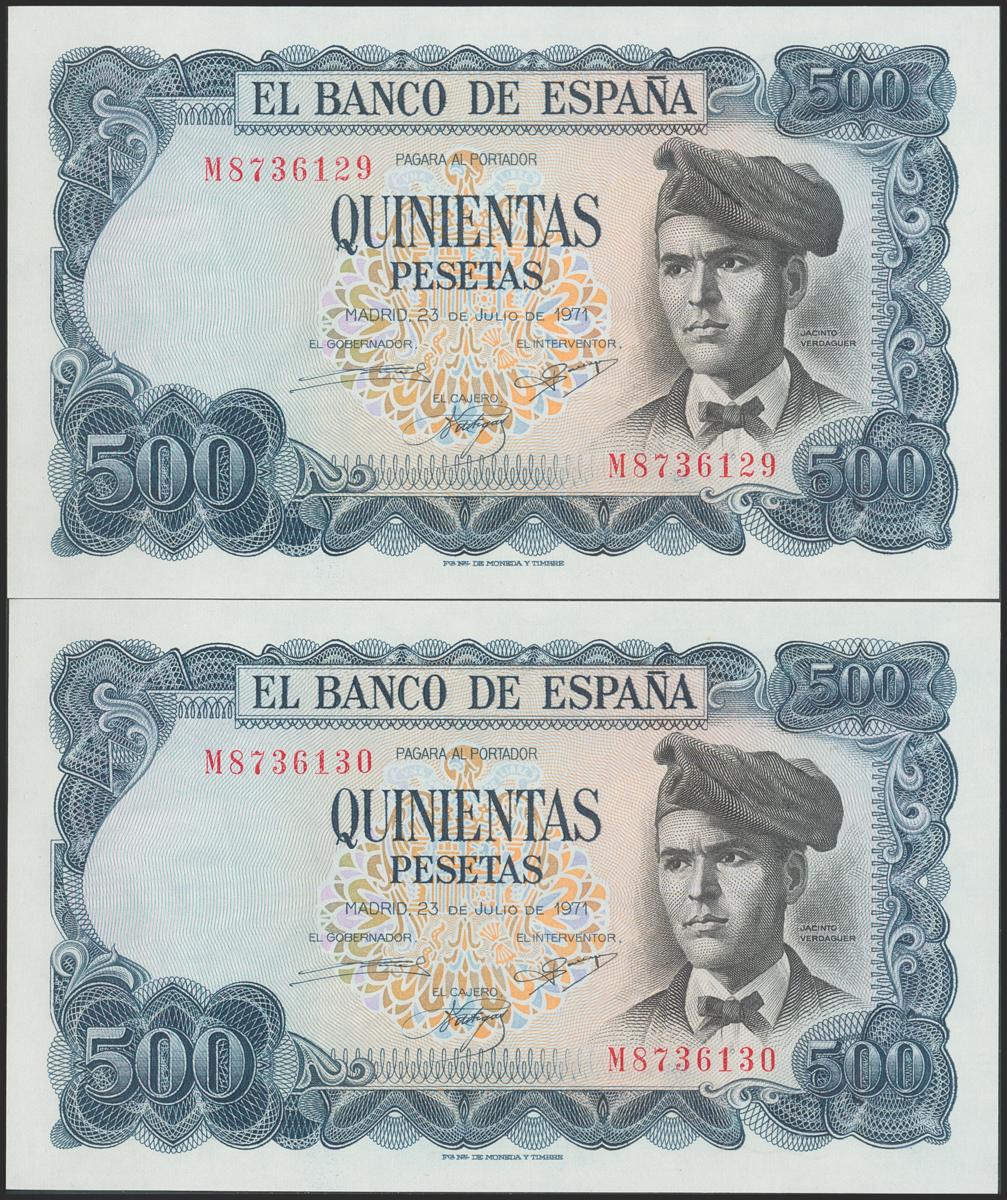 500 Pesetas. 23 de Noviembre de 1971. Pareja correlativa. Serie M. (Edifil 2017: 473a). SC/SC-