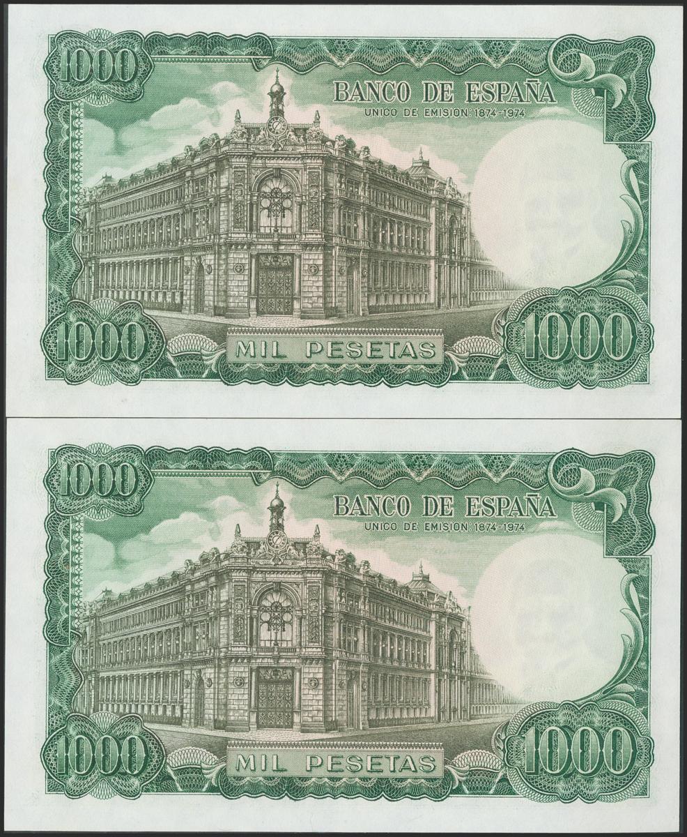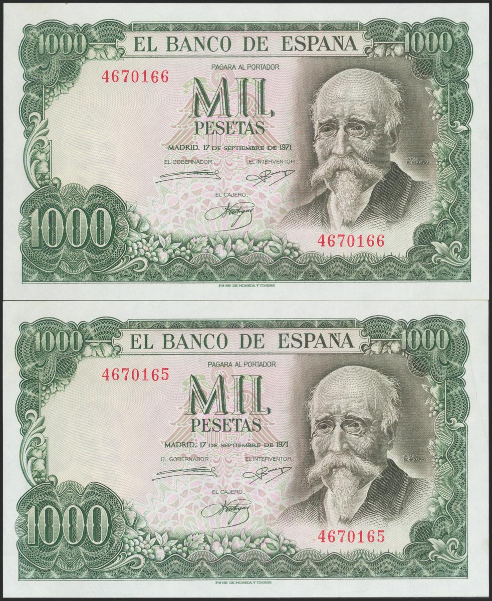 1000 Pesetas. 17 de Septiembre de 1971. Sin serie. Pareja correlativa. (Edifil 2017: 474). Apresto original. SC.