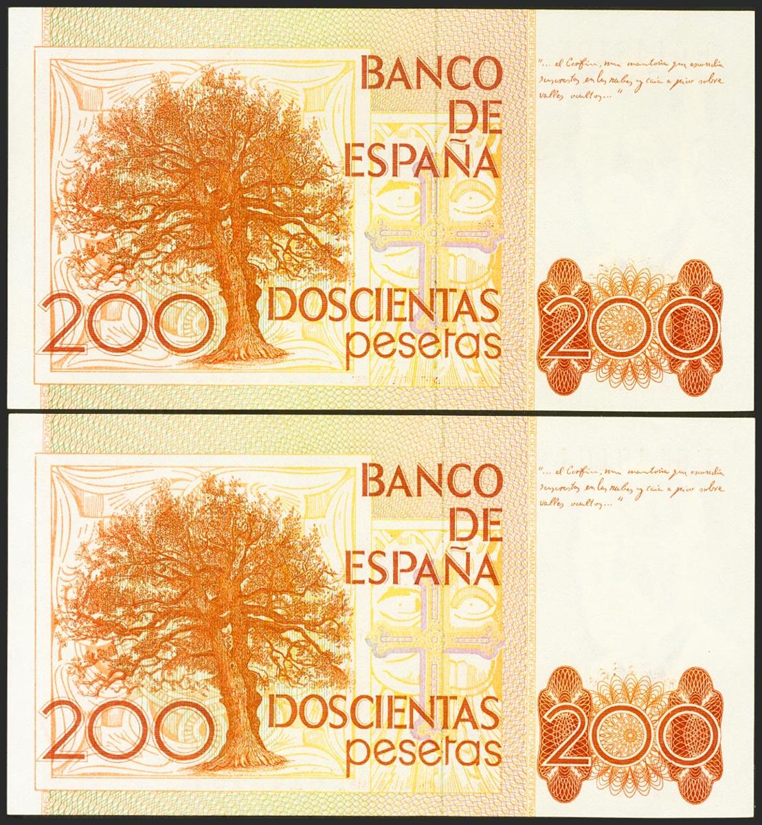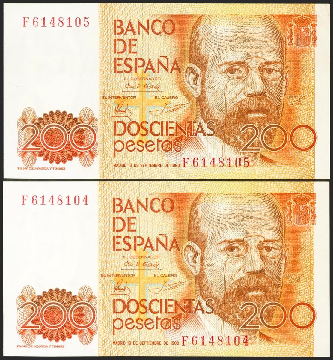 200 Pesetas. 16 de Septiembre de 1980. Pareja correlativa. Serie F. (Edifil 2021: 480a). SC.