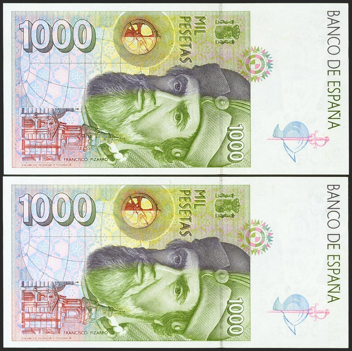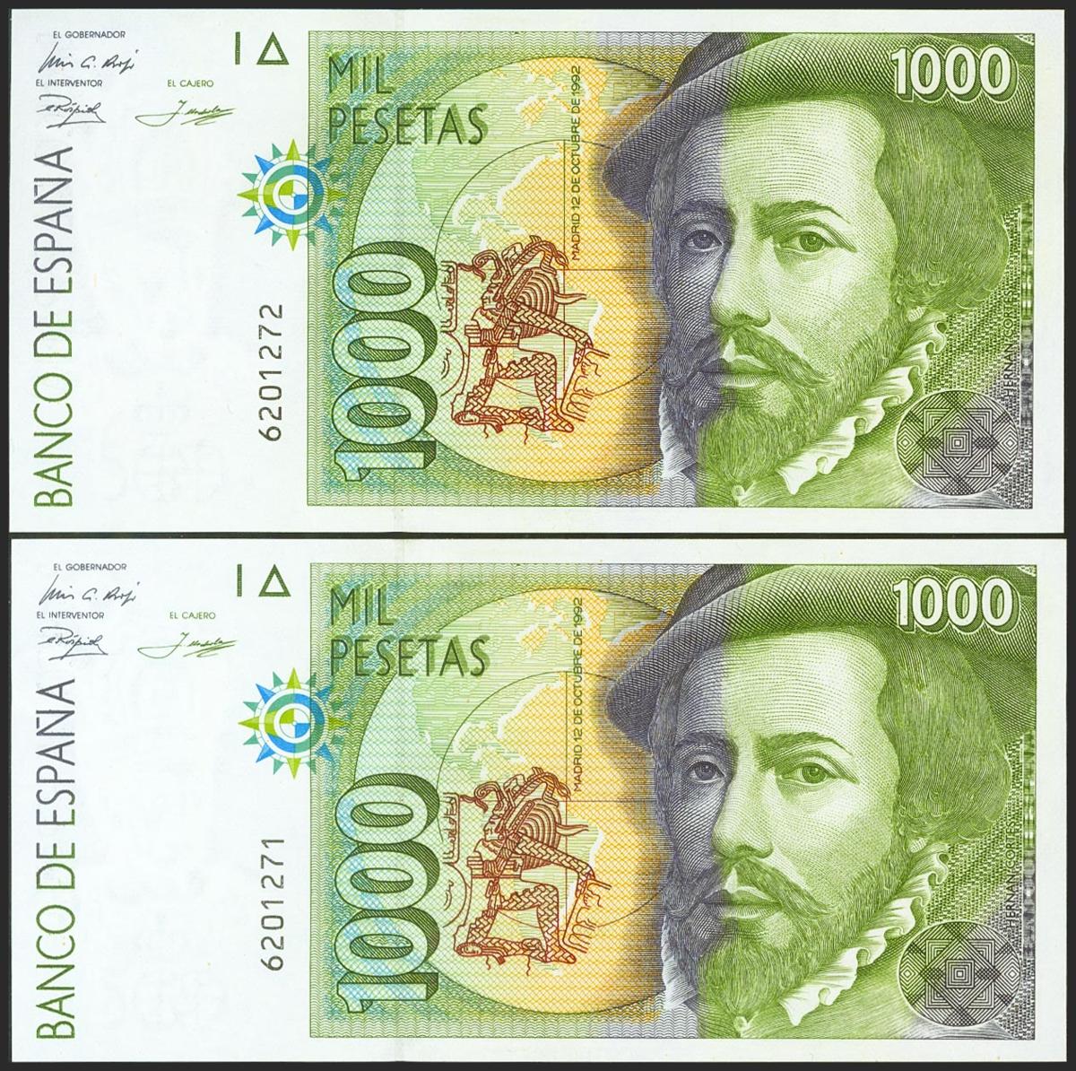 1000 Pesetas. 12 de Octubre de 1992. Pareja correlativa. Sin serie. (Edifil 2021: 483). SC.