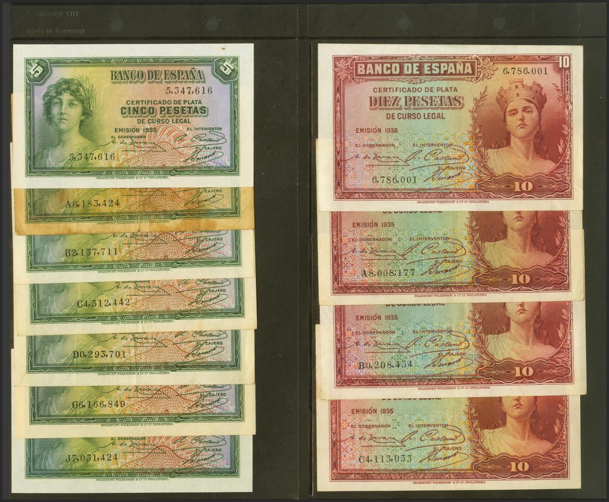 Conjunto de 15 billetes del Banco de España, de diferentes emisiones y en diversas calidades. A EXAMINAR.