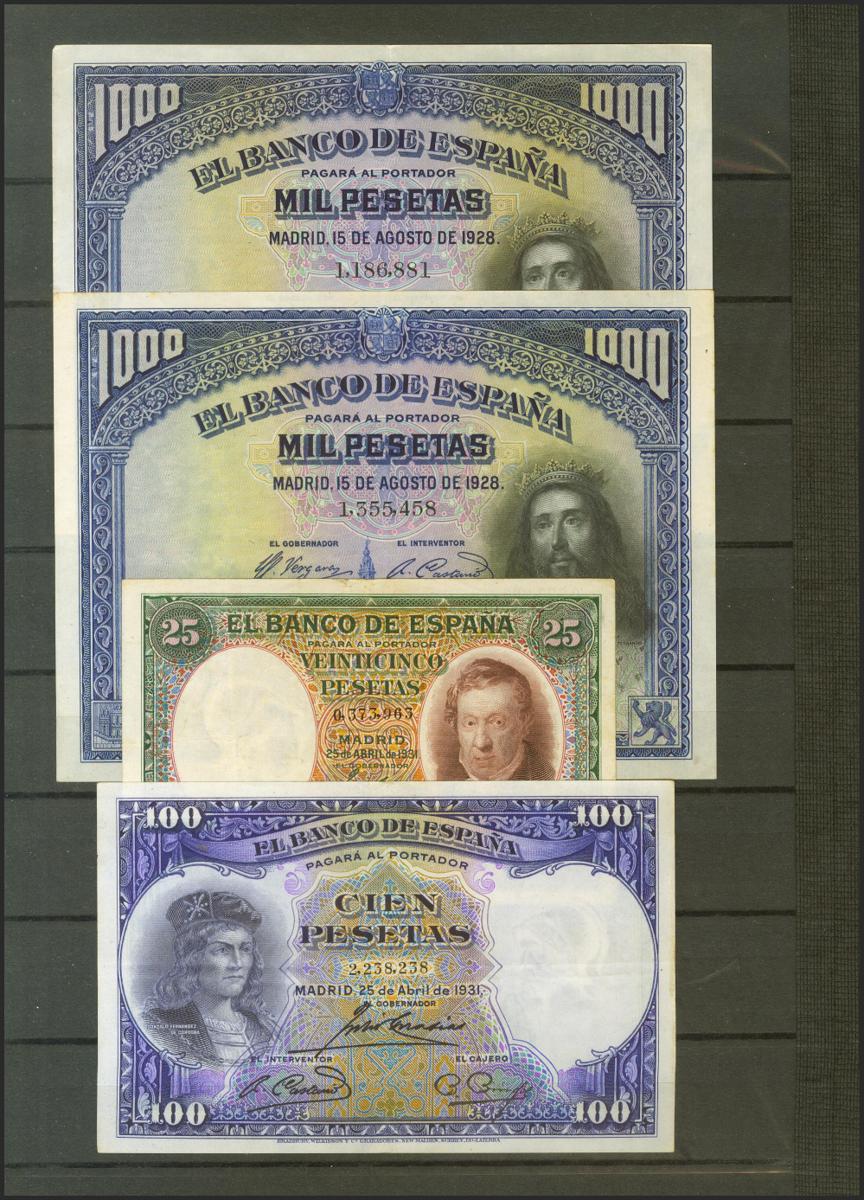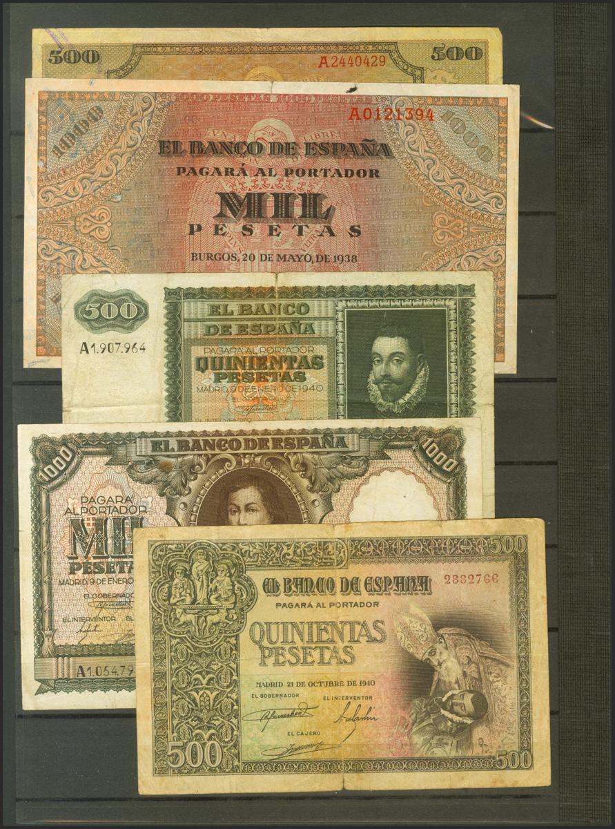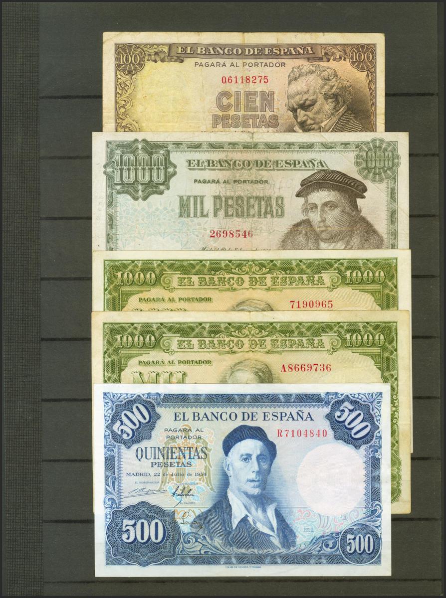 Conjunto de 35 billetes del Banco de España de diferentes emisiones y en diversas calidades. SC/MBC+. A EXAMINAR.