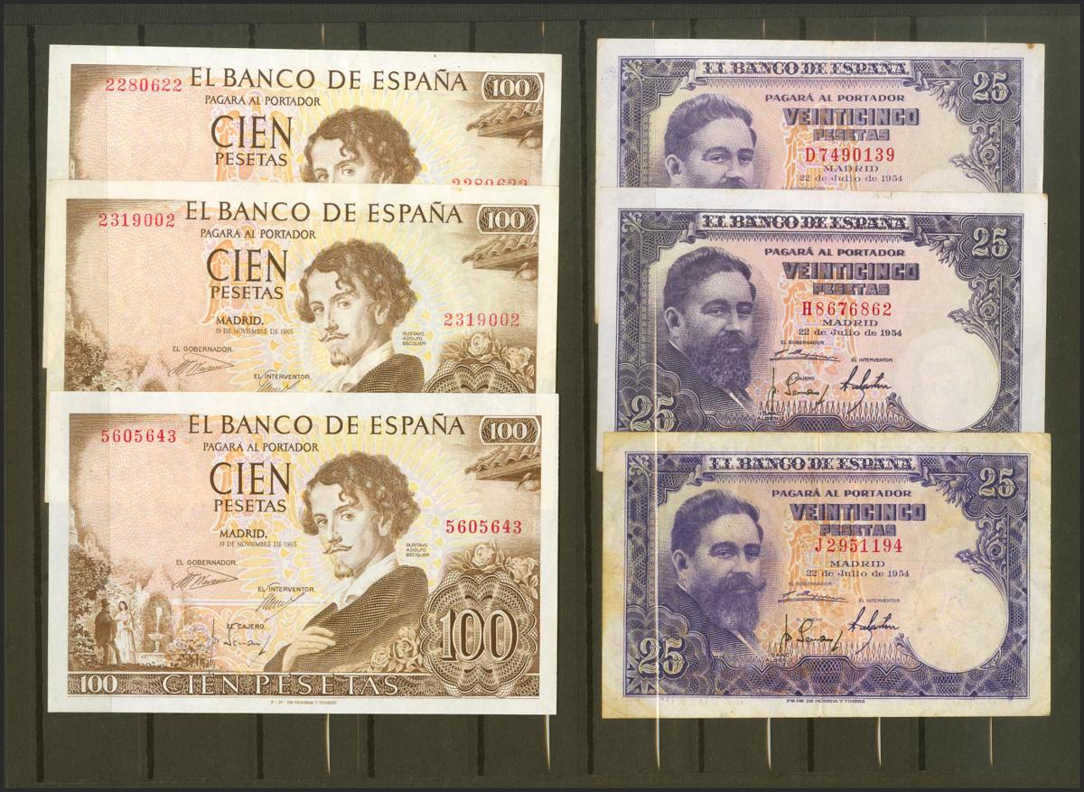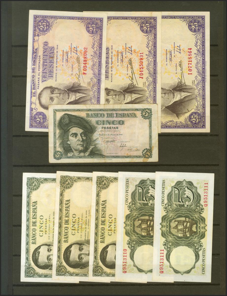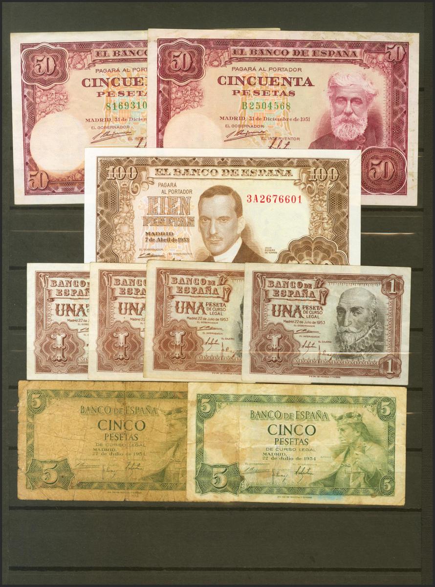 Conjunto de 49 billetes del Banco de España emitidos entre 1906 y 1965, en diversas calidades. SC/BC. A EXAMINAR.