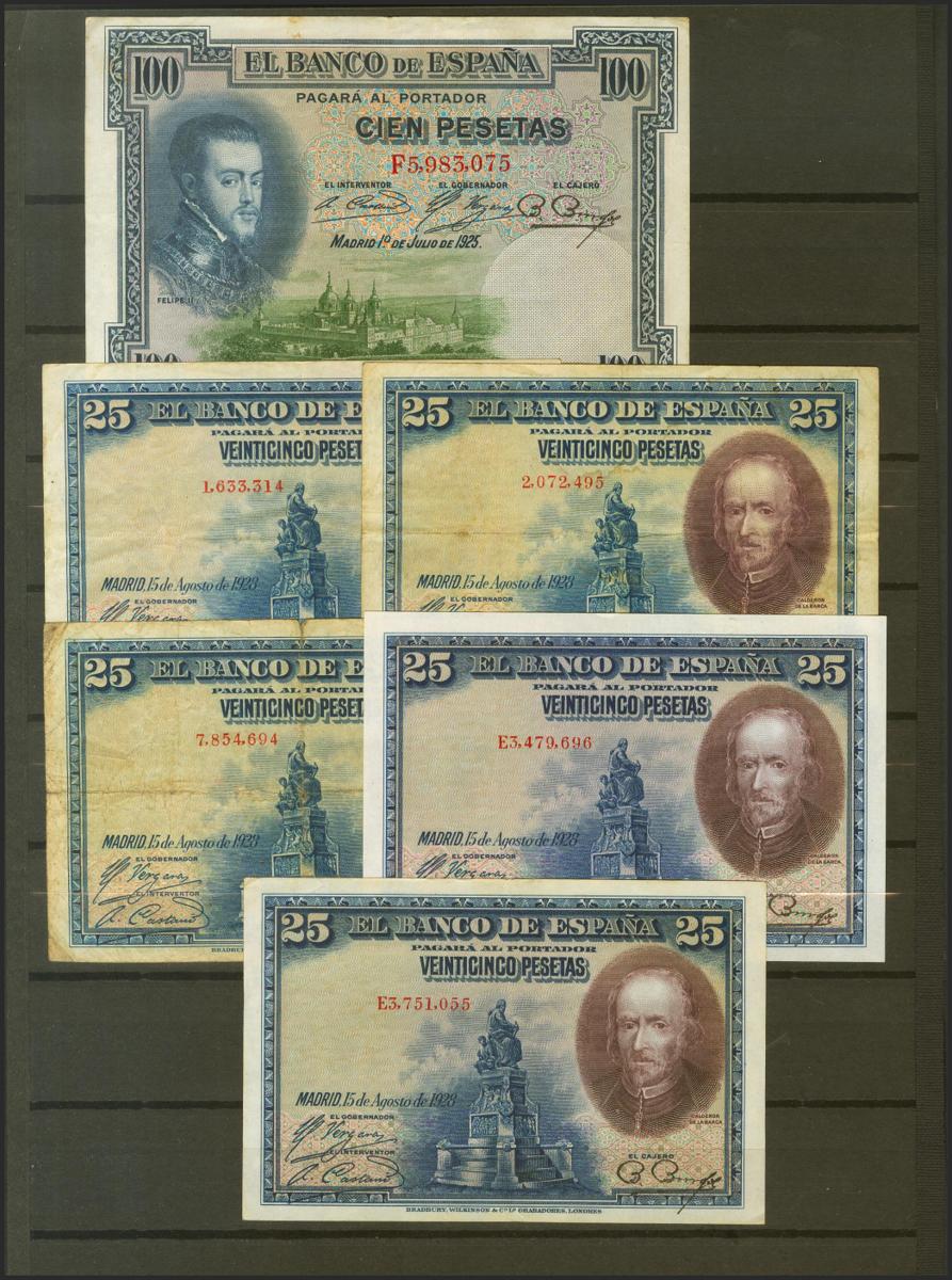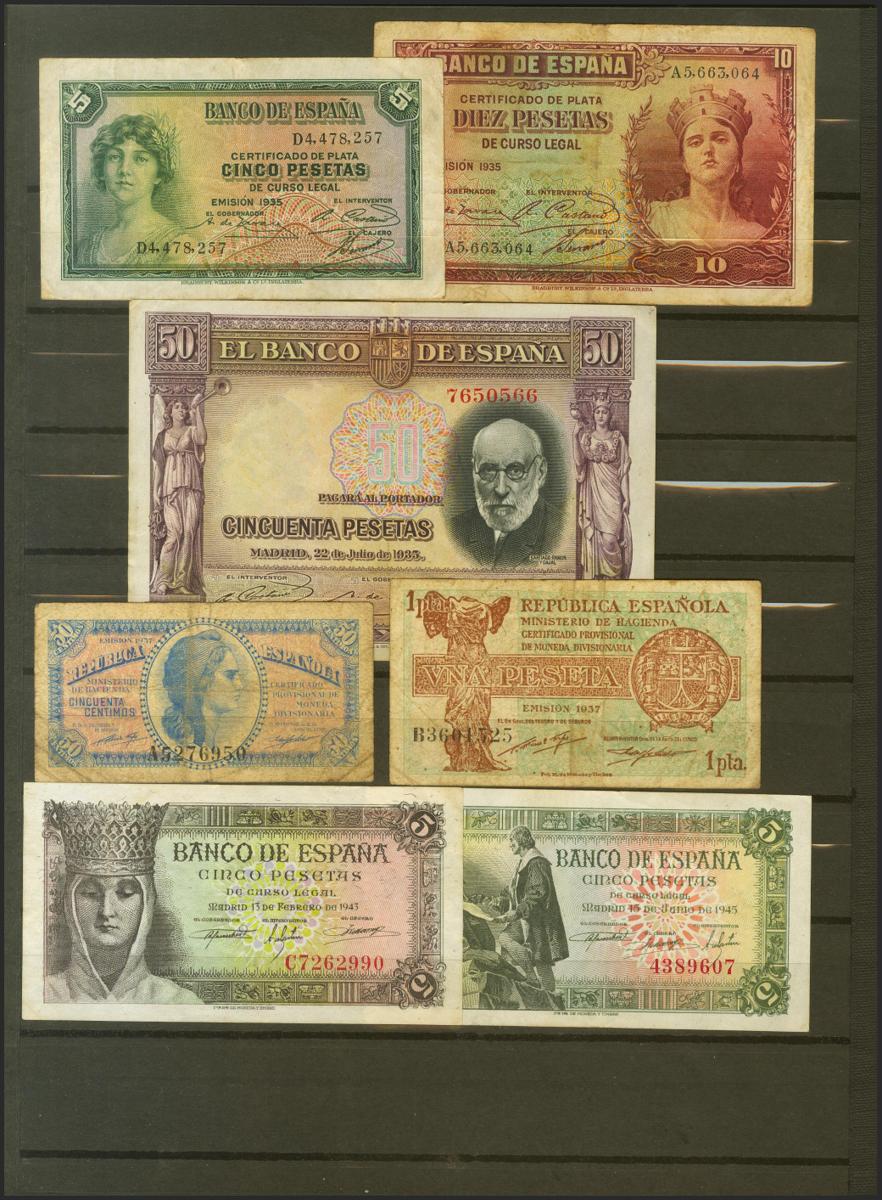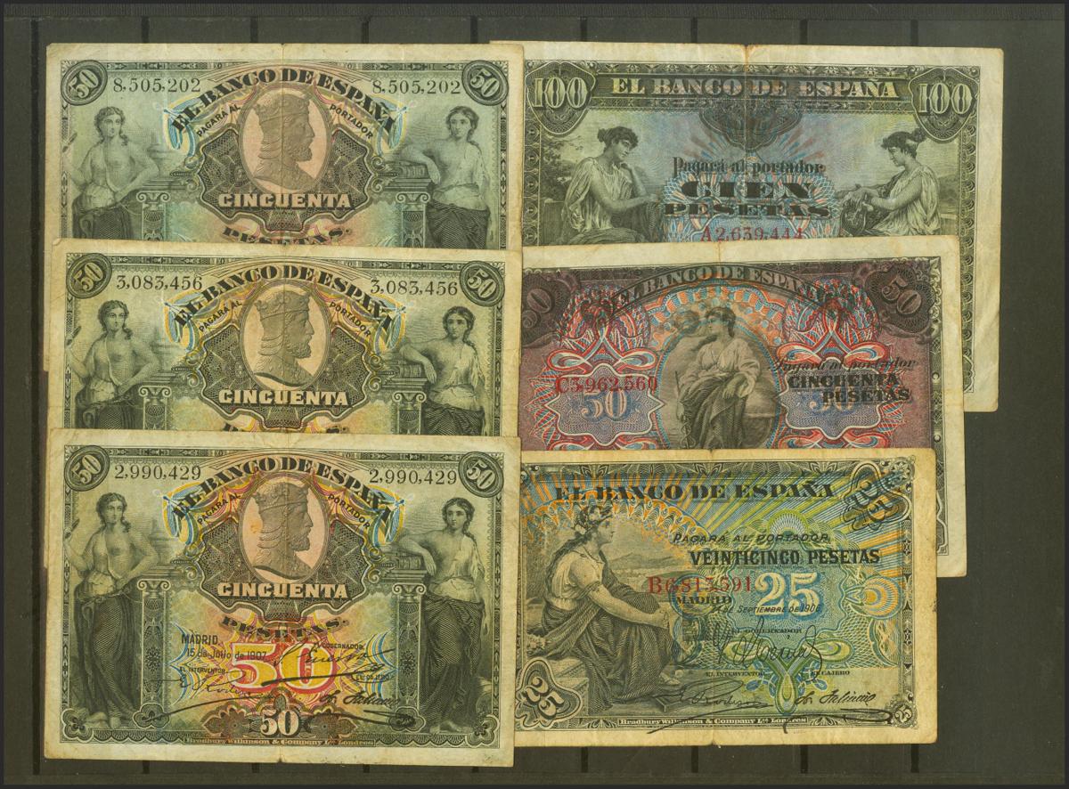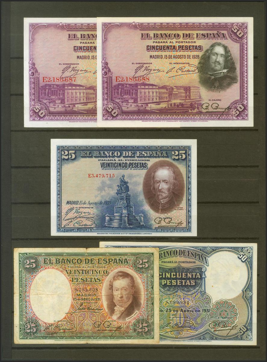 Conjunto de 49 billetes del Banco de España emitidos entre 1906 y 1965, en diversas calidades. SC/BC. A EXAMINAR.