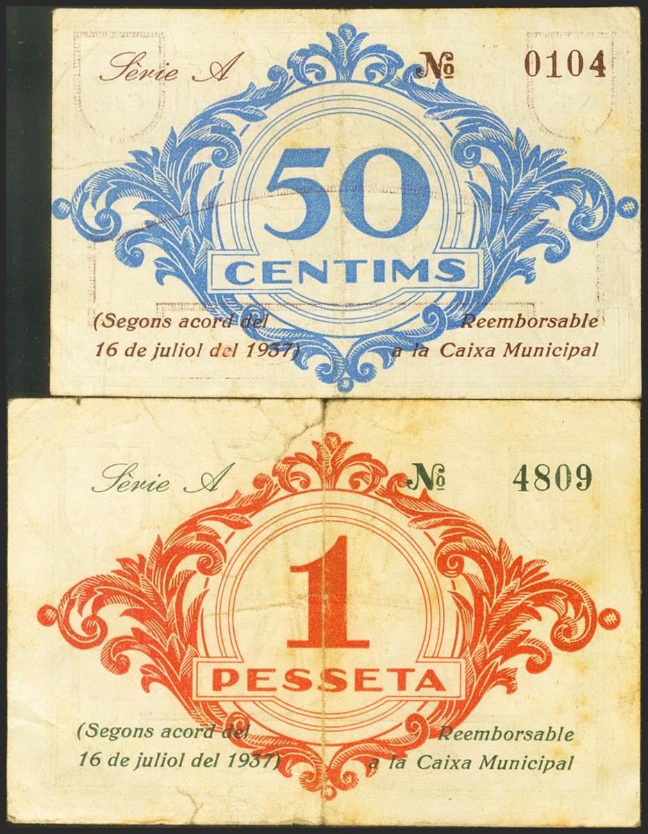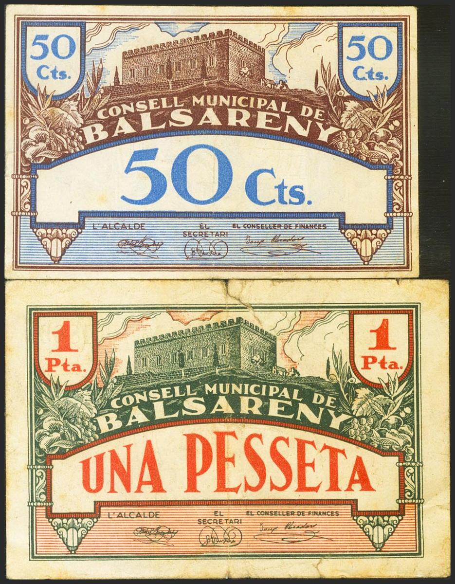 BALSARENY (BARCELONA). 50 Céntimos y 1 Peseta. 16 de Junio de 1937. Serie A, ambos. (González: 6498, 6499). BC.