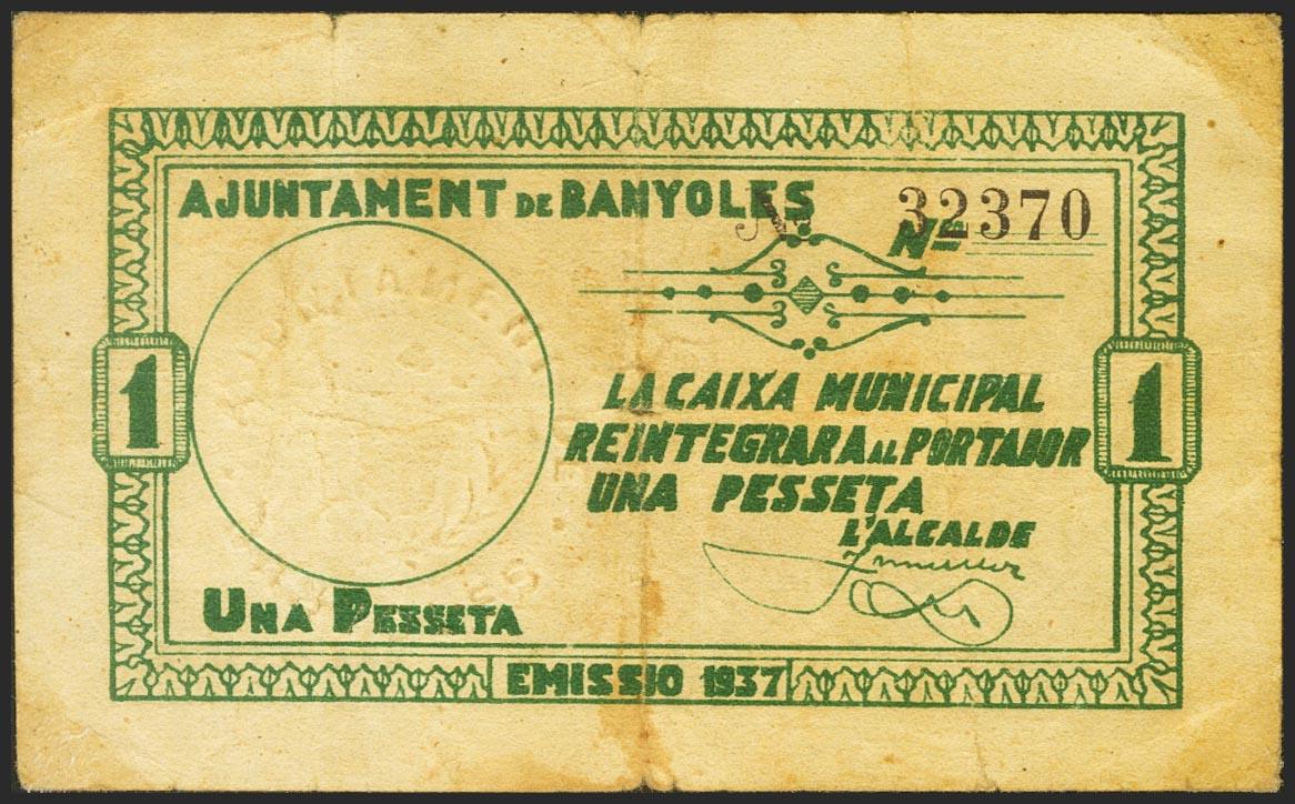 BANYOLES (GERONA). 1 Peseta. 1937. (González: 6504). MBC.